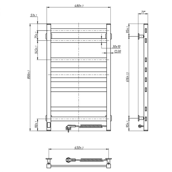 Модель оснащена сенсорним керуванням, що забезпечує зручність та простоту експлуатації. Вбудований таймер дозволяє задавати точний час роботи сушки для рушників, що сприяє економії електроенергії і підвищує безпеку використання. Електричне нагрівання забезпечує швидке і рівномірне прогрівання рушникосушарки, дозволяючи ефективно просушувати рушники і підтримувати комфортну температуру в приміщенні незалежно від системи гарячого водопостачання.