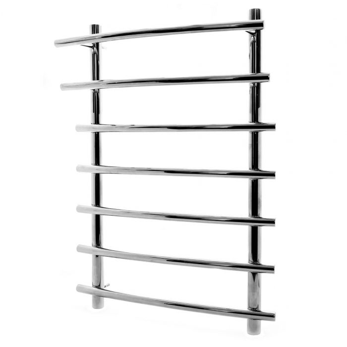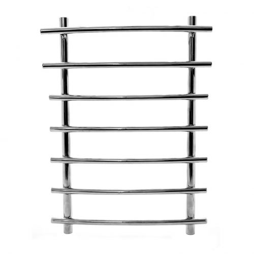 Корпус полотенцесушителя изготовлен из прочной нержавеющей стали, устойчивой к коррозии и воздействию влаги. Поверхность изделия полированная, что обеспечивает легкость ухода и сохранение эстетичного внешнего вида на протяжении всего срока эксплуатации. Конструкция выполнена в виде нескольких горизонтальных перекладин, соединённых вертикальными стойками, что обеспечивает равномерное распределение тепла и удобство использования.