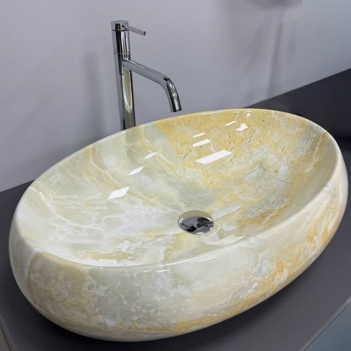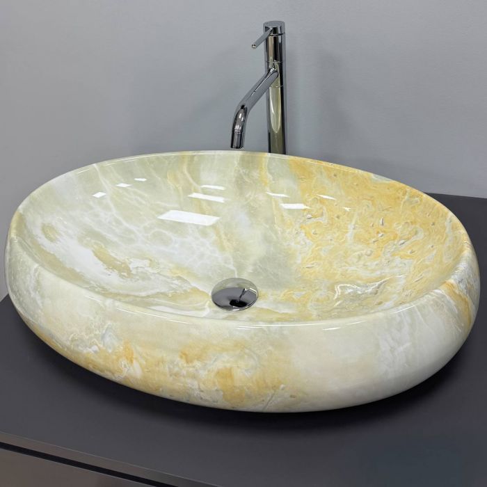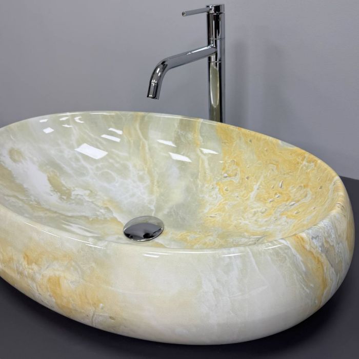 Чаша умывальника обладает продуманной геометрией с плавными внутренними линиями и достаточной глубиной, что способствует эффективному отводу воды и снижает разбрызгивание во время эксплуатации. Гладкая поверхность облегчает уход за изделием и помогает поддерживать его аккуратный внешний вид на протяжении длительного времени. Эффект лабрадорита добавляет визуальную выразительность, делая модель стильным элементом оформления современной ванной комнаты.