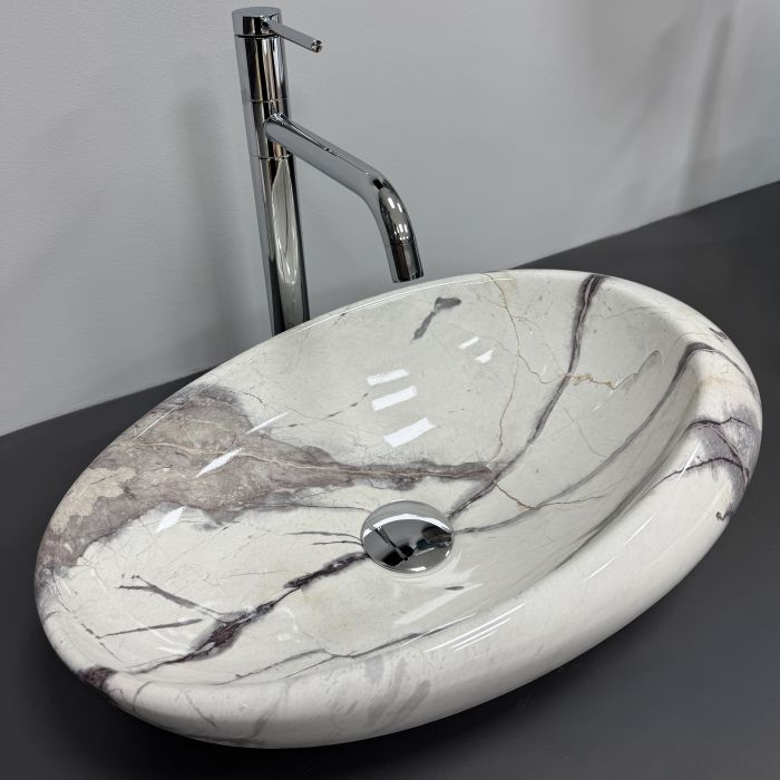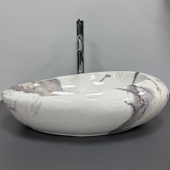 Конструкция умывальника предусматривает накладной способ установки на столешницу или тумбу. Накладной монтаж обеспечивает аккуратный, завершённый вид зоны умывания и делает процесс установки более простым и удобным. Отсутствие напольной опоры освобождает пространство под изделием, облегчает уборку и создаёт визуально более лёгкое и воздушное пространство. Такая конфигурация делает модель удобной для повседневного использования и позволяет рационально использовать пространство ванной комнаты.
