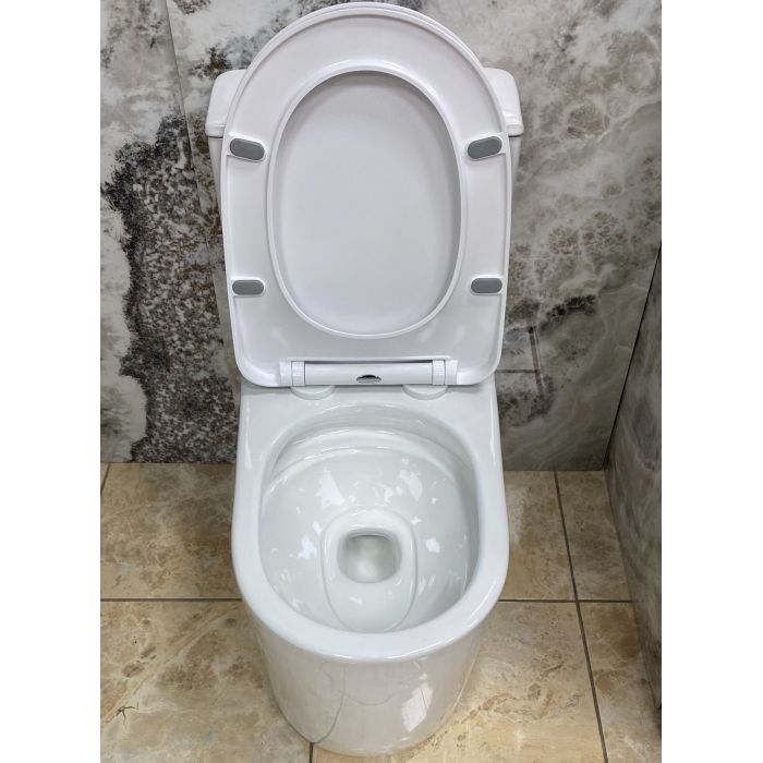 Унитаз изготовлен из высококачественной керамики с гладкой глазурованной поверхностью, которая обеспечивает долговечность и облегчает уход. Материал устойчив к воздействию влаги, бытовых чистящих средств и перепадам температуры, препятствует накоплению загрязнений и сохраняет эстетичный вид на протяжении длительного времени.