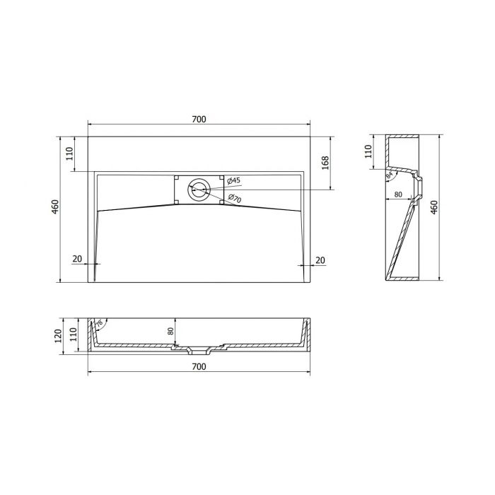 Ширина 70 см робить умивальник оптимальним рішенням для ванних кімнат середнього та великого розміру. Простора чаша забезпечує достатній внутрішній простір для вмивання, знижуючи можливість розбризкування води. Ергономічна глибина та плавні внутрішні контури сприяють комфортному використанню та легкому догляду за поверхнею.