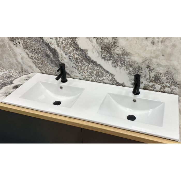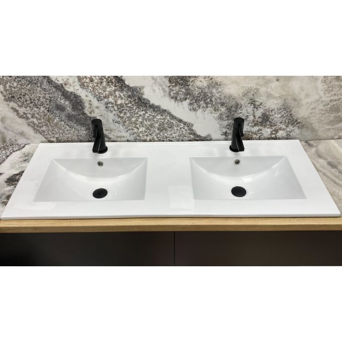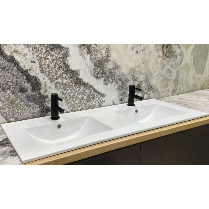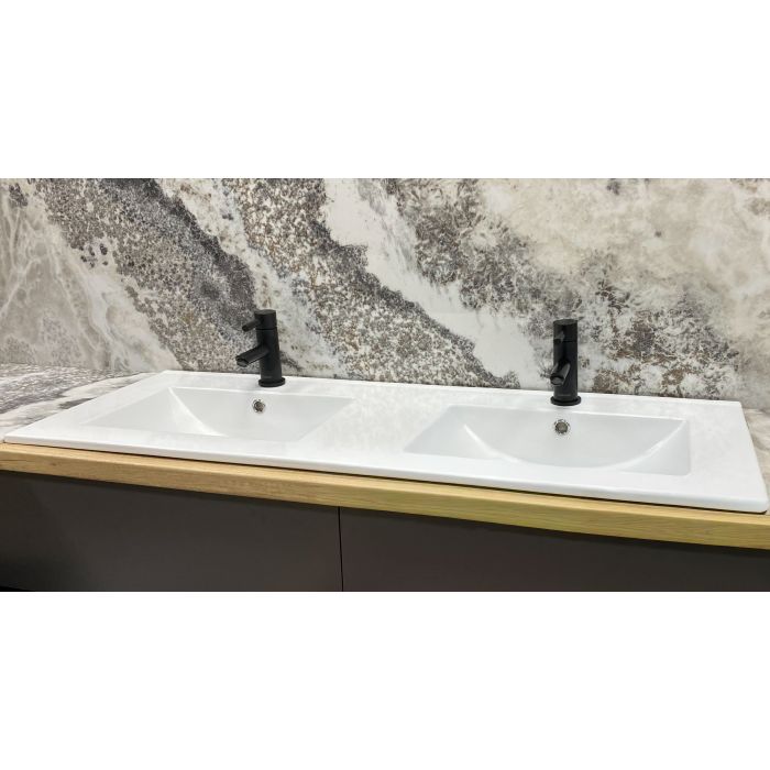 Конструкція умивальника передбачає врізний спосіб встановлення в стільницю або тумбу. Такий спосіб монтажу забезпечує акуратний та завершений вид зони вмивання, а також оптимальне використання поверхні стільниці навколо чаші. Ширина виробу 120 см робить модель вдалим вибором для просторих ванних кімнат, де потрібна велика робоча зона для комфортного щоденного використання. Завдяки більшій площі умивальник зручно використовувати кільком людям одночасно, що підвищує його функціональність.