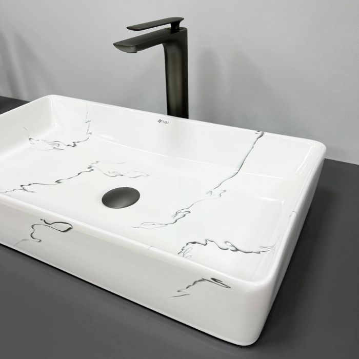 Умивальник (раковина) VBI TRIEST MARMO накладний VBI-012704 – це елегантне та сучасне рішення для ванної кімнати, яке привнесе у ваш простір нотки вишуканості та стилю. Виготовлений з високоякісного керамограніту з текстурою, що імітує натуральний мармур, цей умивальник поєднує міцність і елегантність, що робить його ідеальним вибором для сучасних інтер'єрів.