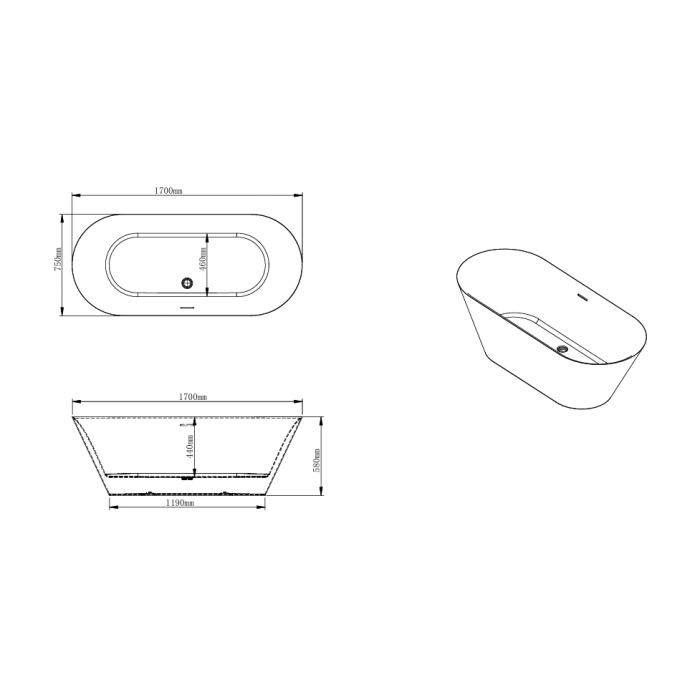 Ванна VBI GRIVOLA 170 x 75 окремостояща VBI-070917 призначена для створення сучасного та функціонального простору ванної кімнати. Окремий формат установки дозволяє використовувати модель як самостійний елемент інтер'єру, формуючи виразний акцент та забезпечуючи гнучкість у плануванні приміщення. Конструкція підходить для розміщення як біля стіни, так і в центральній частині при відповідній організації підведення комунікацій.