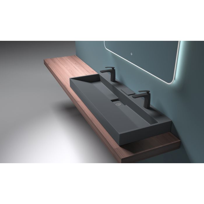 Раковина оснащена стандартними отворами під змішувачі, що дозволяє легко підібрати відповідні моделі та підключити систему водопостачання без додаткових доопрацювань. Універсальні розміри, сучасний лаконічний дизайн і висока практичність роблять VBI ESTE 120 BLACK 2/O, що підходить для встановлення в квартирах, заміських будинках, готелях, офісах та громадських приміщеннях. Завдяки поєднанню естетичної привабливості, міцності та зручності, умивальник забезпечує надійність та довговічність при щоденному використанні, створюючи у ванній кімнаті стильний акцент, який підкреслює індивідуальність інтер'єру та надає приміщенню завершеного, гармонійного та сучасного вигляду.