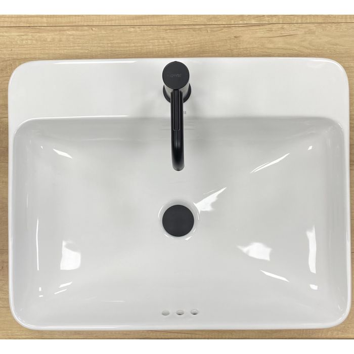 Конструкція умивальника передбачає врізний спосіб встановлення в стільницю або тумбу, що забезпечує акуратний та завершений вид зони вмивання. Такий спосіб монтажу дозволяє інтегрувати виріб у планування ванної кімнати, раціонально використовувати робочу поверхню стільниці та приховати комунікації, створюючи відчуття цілісності та порядку. Умивальник підходить для приміщень різних розмірів, забезпечуючи зручність щоденного використання.